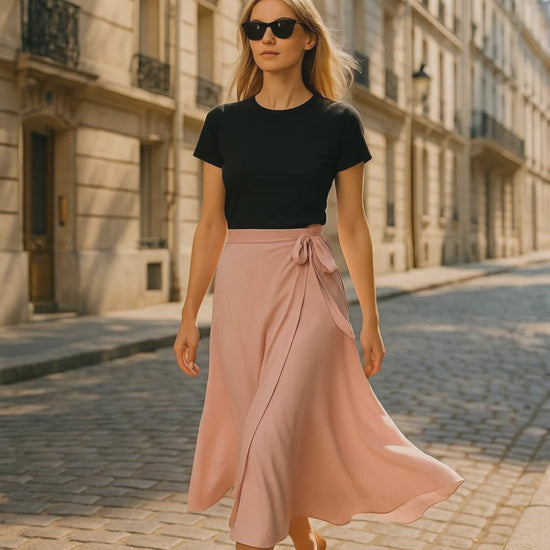The Éloïse Skirt is a burst of joy wrapped in a breeze. With its painterly floral print and flowing silhouette, it feels like a garden party on the Seine or a sun-drenched detour through Provence. The gathered high waist flatters without fuss, while the ankle-grazing length makes every step feel like a soft statement. Cut from breathable organic cotton-linen and adorned with a vibrant, hand-drawn botanical motif, Éloïse brings color and movement to even the simplest of days. Pair it with a crisp white blouse, a straw hat, and a baguette under your arm — et voilà.