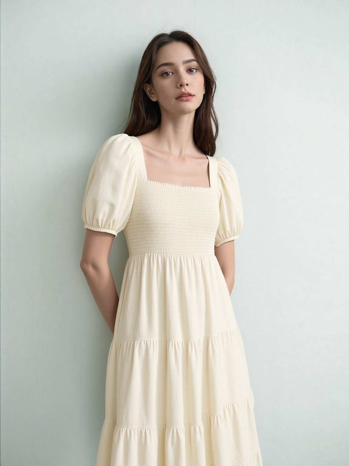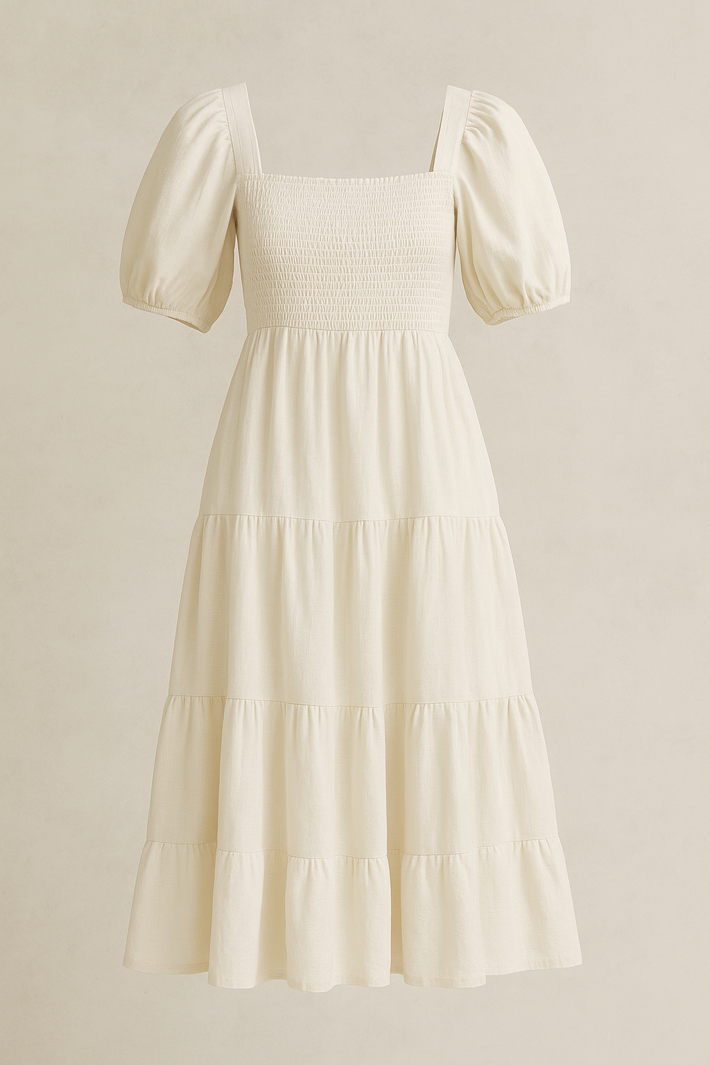 The Montmartre Dress is a love letter to vintage ateliers and long mornings spent chasing light through cobbled streets. With its romantic smocked bodice, soft puff sleeves, and cascading tiered skirt, it moves with you like a watercolor in motion. Made from breathable organic cotton voile, it’s as dreamy as the Paris sky at golden hour — and just as effortless. Whether you're wandering through a gallery or picking peonies at the Sunday marché, this dress says, "Oh, this old thing?" — in the most charming way.